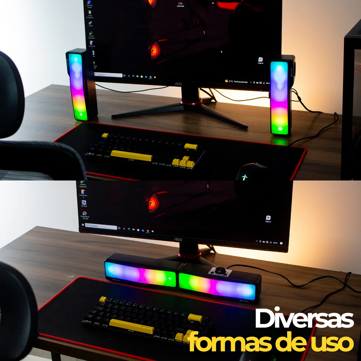 Transforme sua experiência de áudio com a Caixa de Som para Computador Ideal para quem busca de qualidade e práctica, essa soundbar é perfect para ouvir suas músicas, assist pass de assist seu games favorites com potáncia e clareza.
