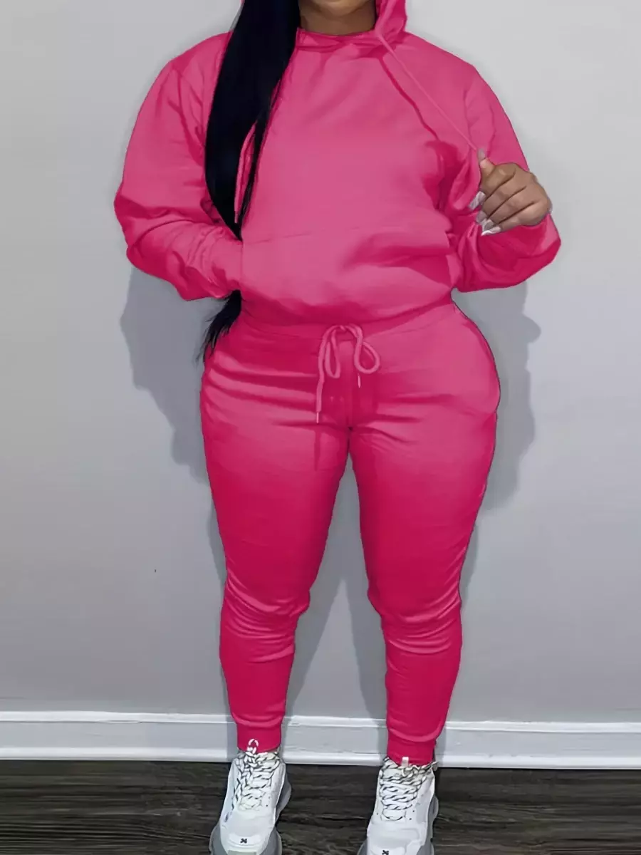 Desperte o seu estilo casual neste outono/inverno com o Conjunto de agasalho com cordão canguru feminino da LovelyWholesale. Confeccionado em poliéster e spandex, este conjunto garante um toque confortável e aconchegante, perfeito para os dias mais frios.